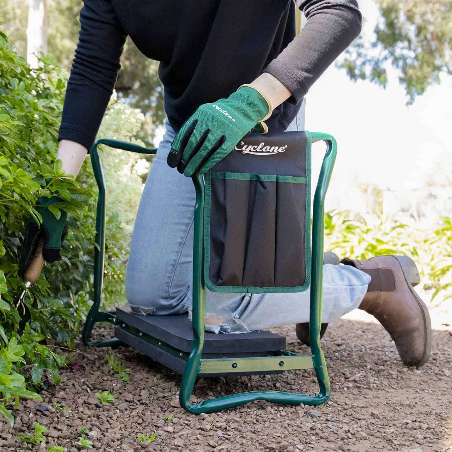 So many essential gardening tasks are done at ground level, be it planting, weeding, mulching or pruning. If the effort of getting up and down or the pressure on your knees from kneeling or crouching is preventing you from gardening, then you’ll love Cyclone’s Foldable Seat and Kneeler. A strong steel frame acts like a handrail, and an extra thick foam pad will cushion your knees, meaning you can garden more comfortably for longer. Flip it over and it doubles as a low seat with a built-in accessory holder to store your tools and gloves whenever you sit for a break.
