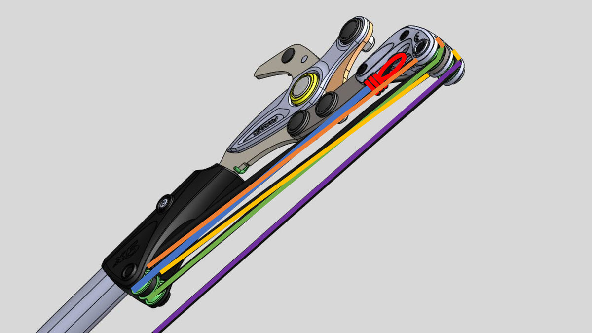 To release the blade, pull down the lever blade tensioner and carefully unhook blade from pegs. Replace with new blade by aligning holes with the pegs and push lever up to secure and tighten.