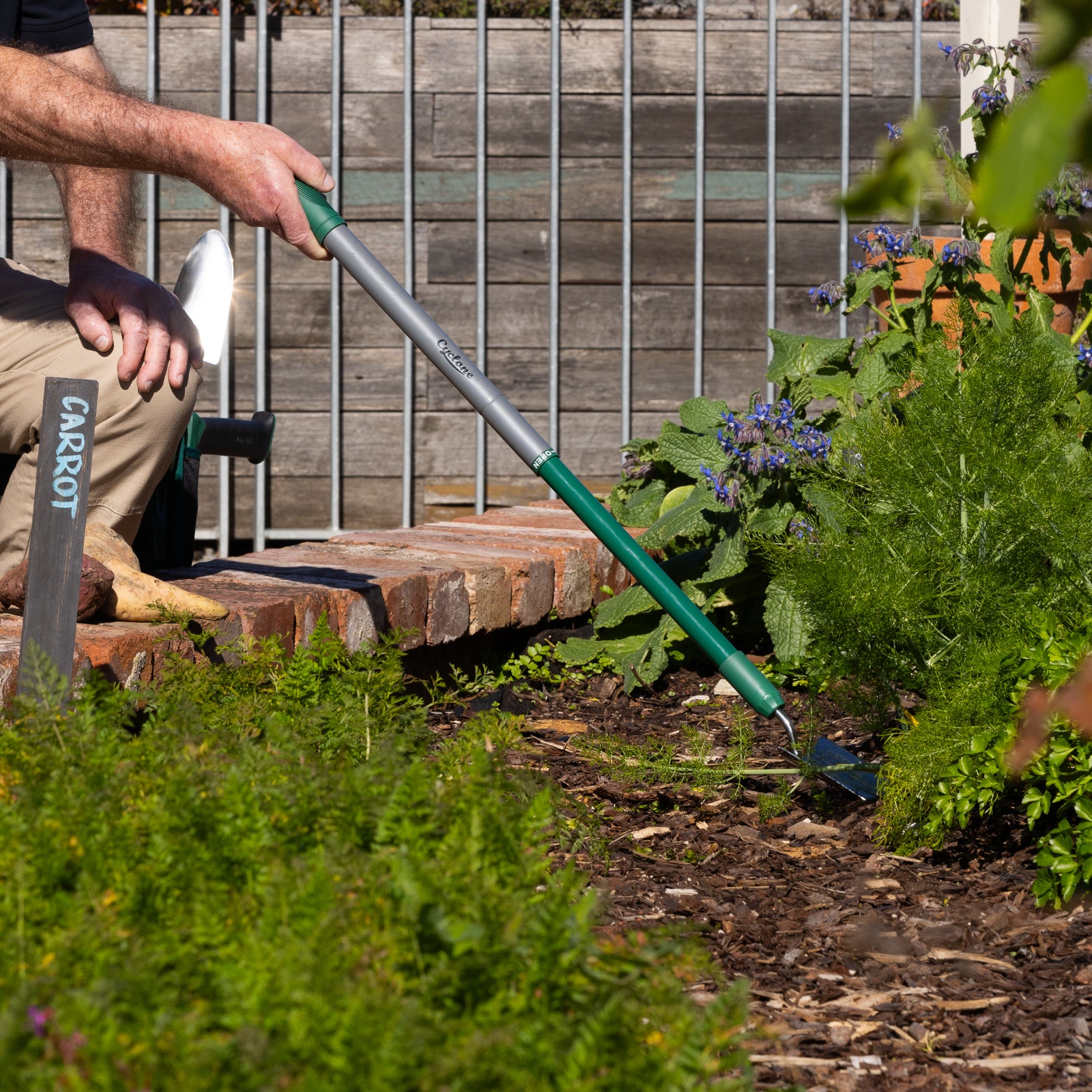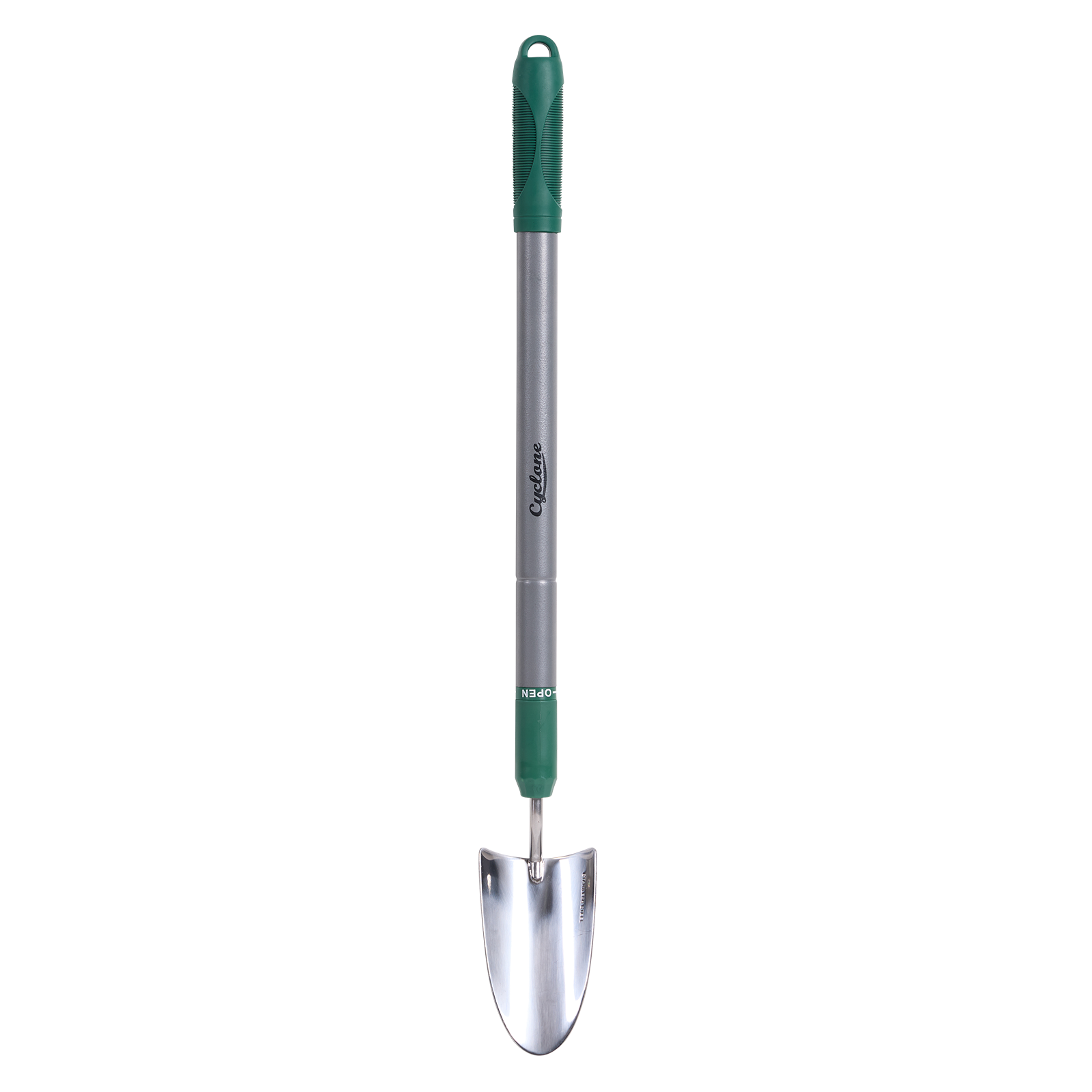 The Cyclone Stainless Steel Telescopic Hand Trowel is perfect for digging, planting, and transplanting in the garden. It features a stainless steel blade for durability and corrosion resistance, and a telescopic handle that adjusts for comfort and reach, making it ideal for working in tight spaces or for reducing strain during gardening tasks.